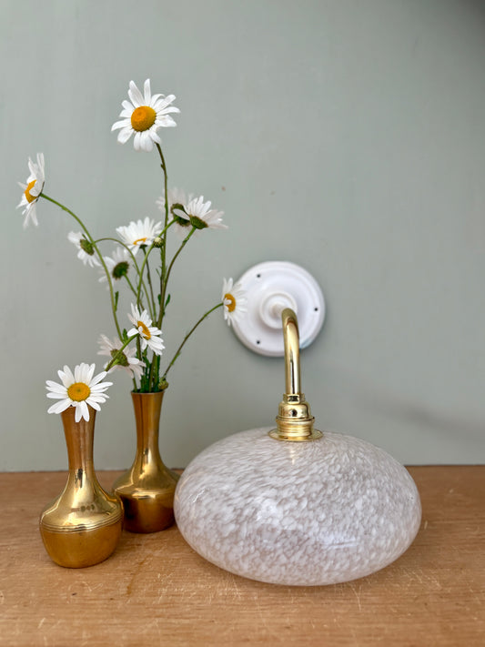 Applique abat-jour vintage art déco en verre de Clichy blanc