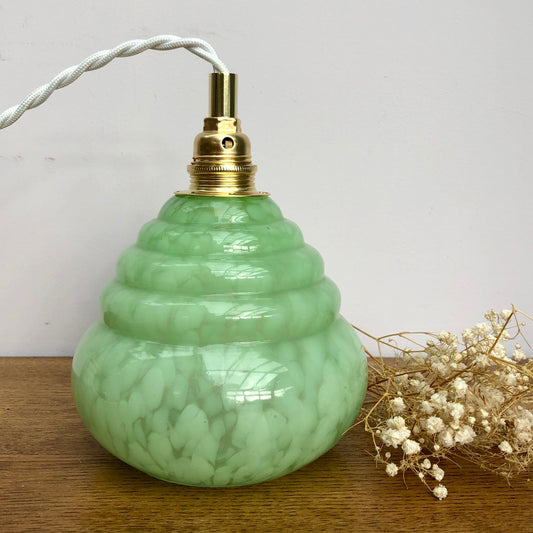 Baladeuse tulipe vintage en verre de Clichy vert mint