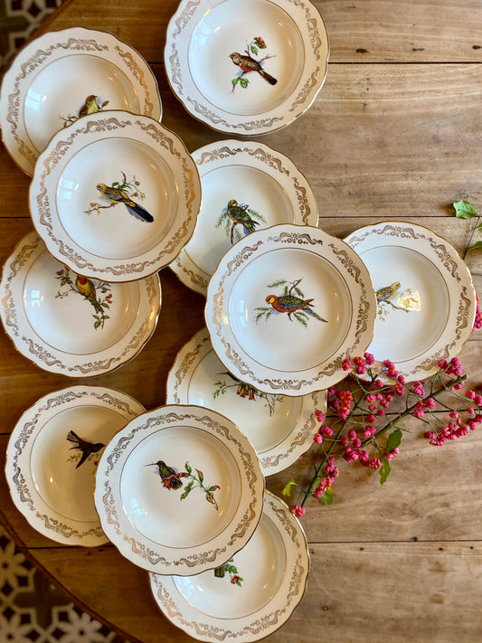 Lot de 11 assiettes creuse vintage, modèle Moineaux de Paris de Gien