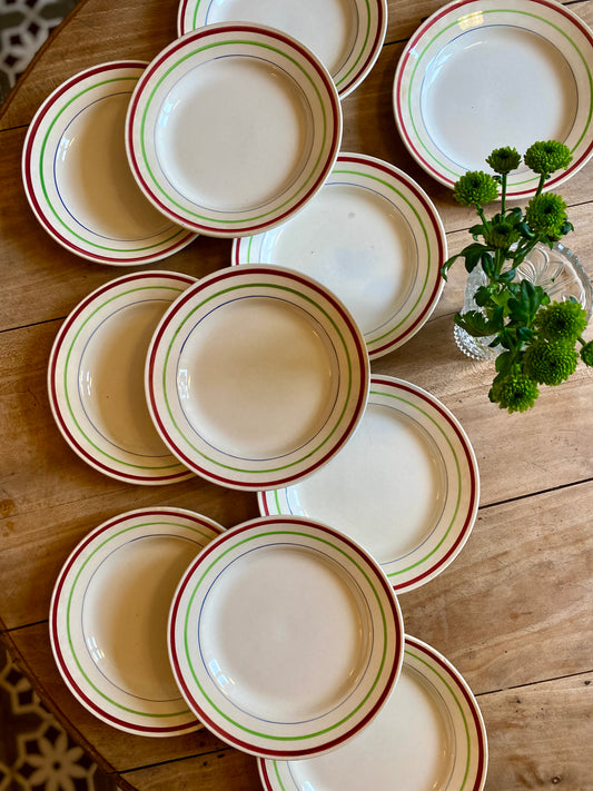 Lot de 11 assiettes à dessert vintage Sarreguemines en porcelaine opaque