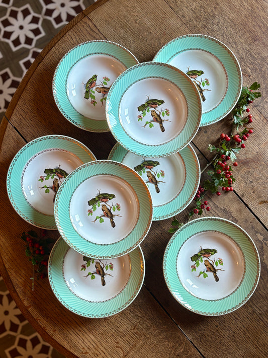 Lot de 8 assiettes creuses vintage décors d'oiseaux