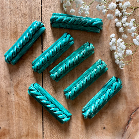 Lot de 7 porte-couteaux vintage en barbotine verte