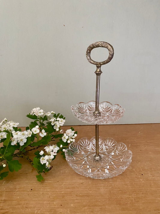 Serviteur ou porte bijoux vintage en verre et métal argenté