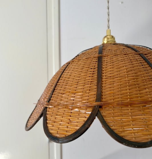 Suspension abat jour vintage en matière naturelle, rotin et cannage