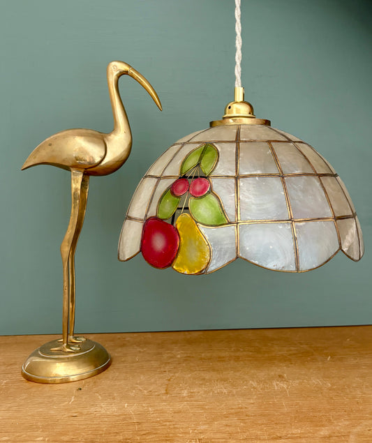 Suspension abat-jour vintage en nacre et laiton décors de fruits