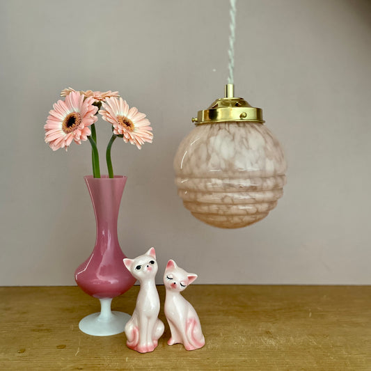 Suspension globe vintage art déco en verre de Clichy rose Pâle