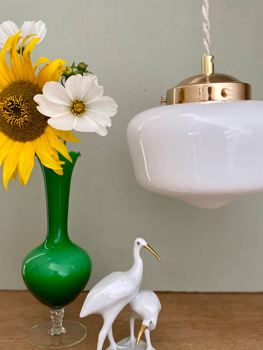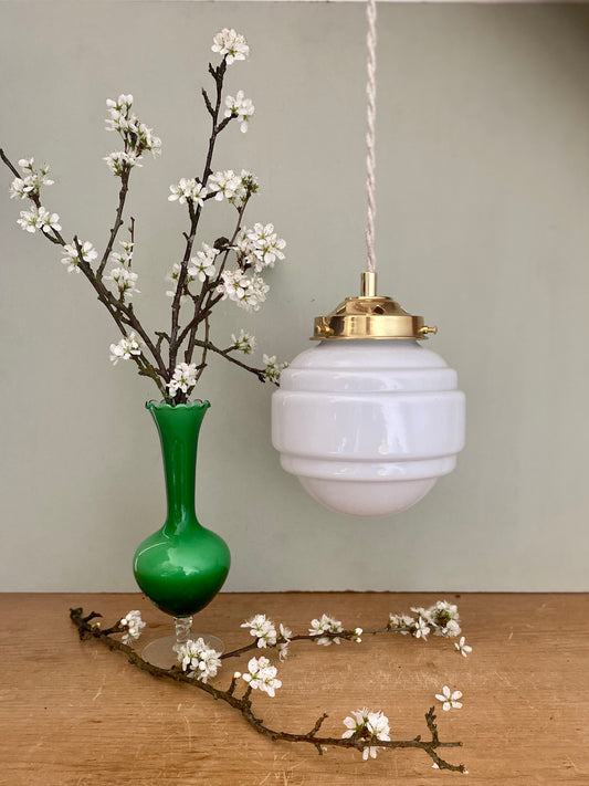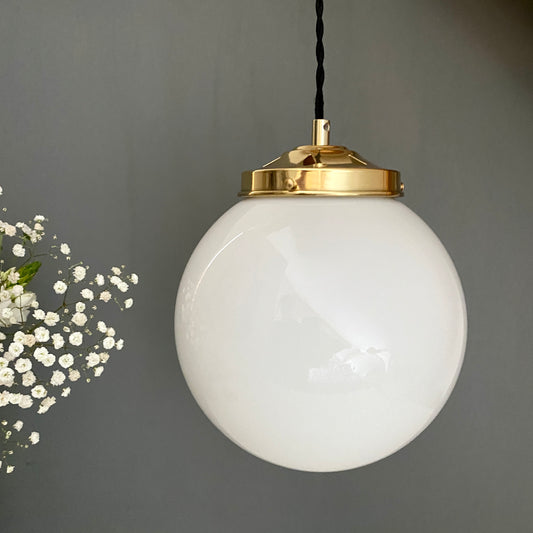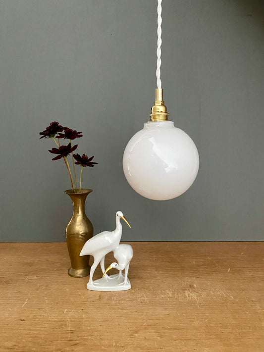 Suspension globe vintage en opaline blanche