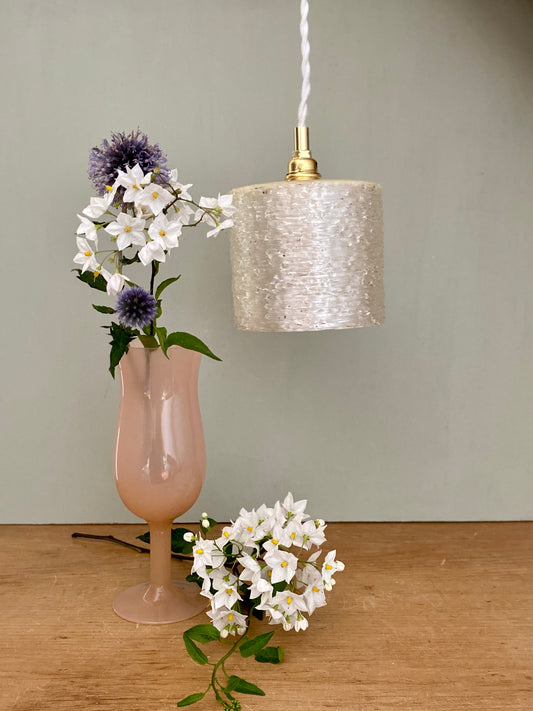 Suspension tulipe vintage art déco en opaline blanche et dorée