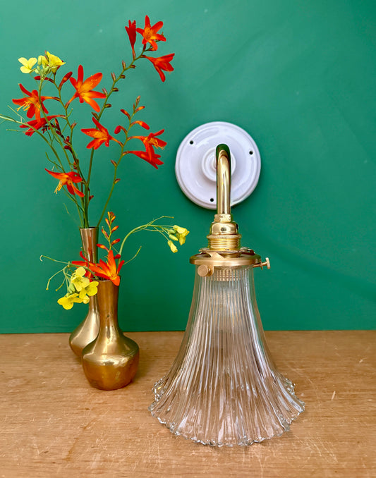 Applique coudée tulipe vintage en verre holophane
