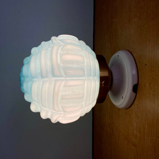 Applique globe vintage art déco en opaline bleue