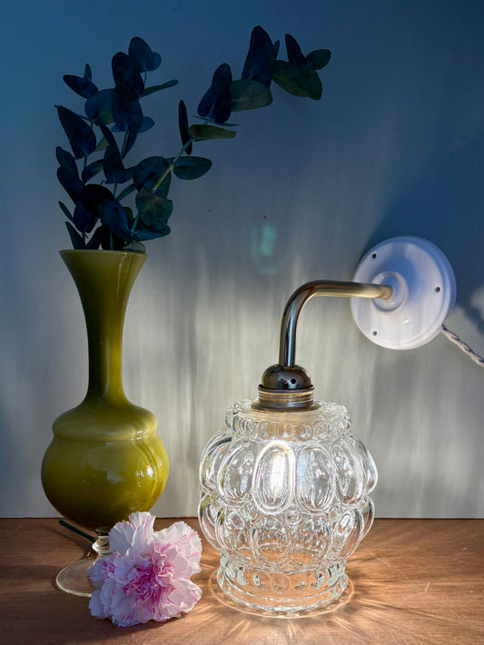 Applique coudée globe vintage en verre bullé
