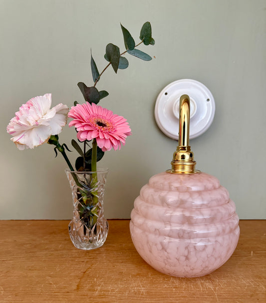 Applique coudée globe vintage en verre de Clichy rose