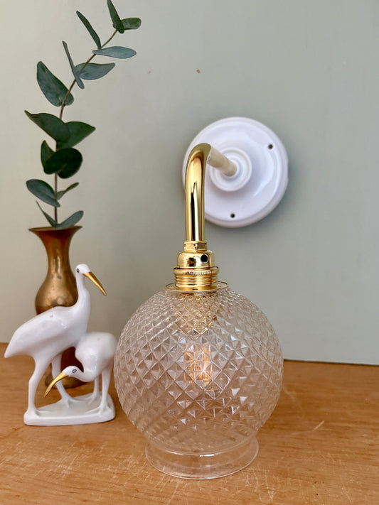 Applique coudée globe vintage en verre