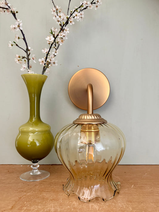 Applique coudée tulipe vintage en verre ambré