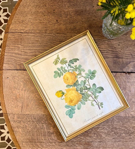 Cadre ancien rose jaune Redouté