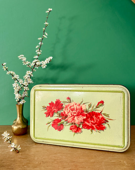 Boîte vintage en métal au décor de fleurs