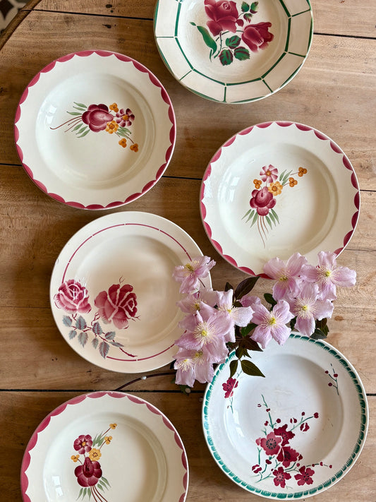 Lot de 12 assiettes creuses vintage - Les Roses -
