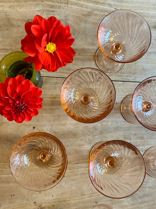 Lot de 6 coupes à champagne vintage en rosaline