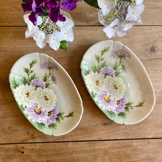Lot de deux ravier anciens en terre de fer - modèle Reines Marguerites de K G Lunéville