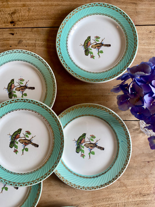 Lot de 6 assiettes à dessert vintage décors d'oiseaux
