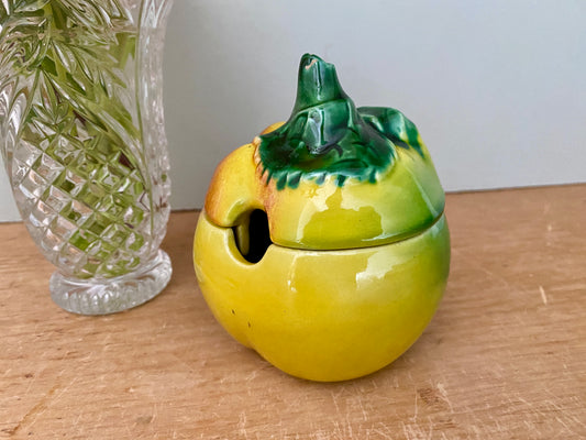 Moutardier ou pot à confiture en barbotine pomme