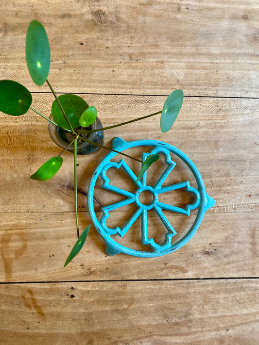 Dessous de plat vintage en fonte bleue ciel