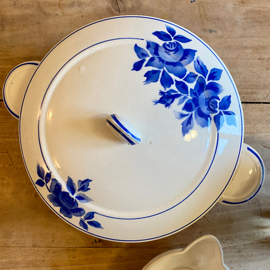 Lot saucière et soupière vintage décors de fleurs bleues