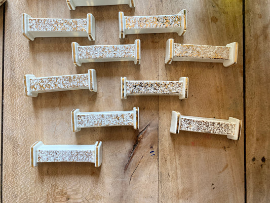 Lot de 10 porte-couteaux vintage art déco en céramique blanche et dorée