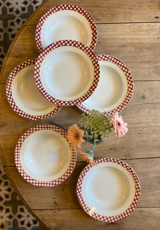 Lot de 6 assiettes creuses vintage - modèle Ecossais de Sarreguemines