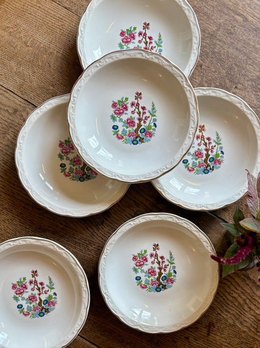Lot de 6 assiettes creuses vintage, modèle "Arbre indien" de Digoin