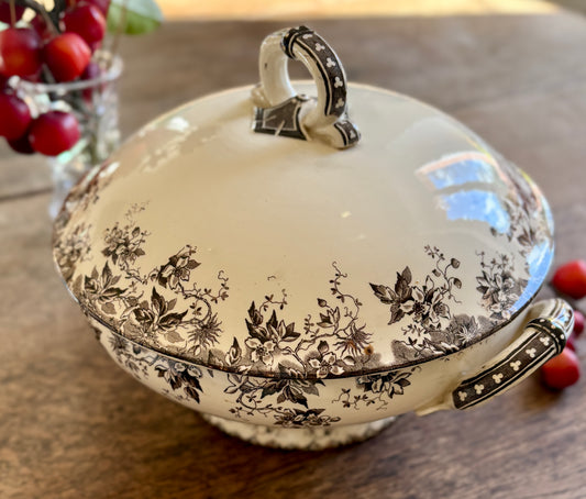 Soupière ancienne en terre de fer, modèle Aplhand de Sarreguemines