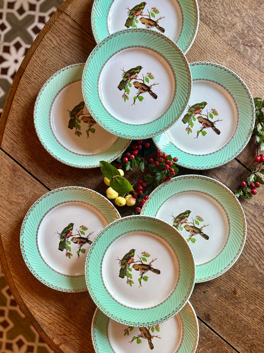 Lot de 8 assiettes plates vintage décors d'oiseaux