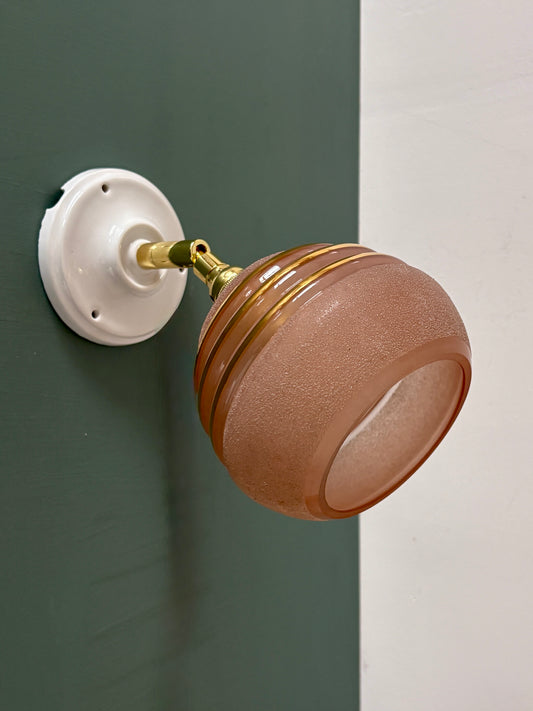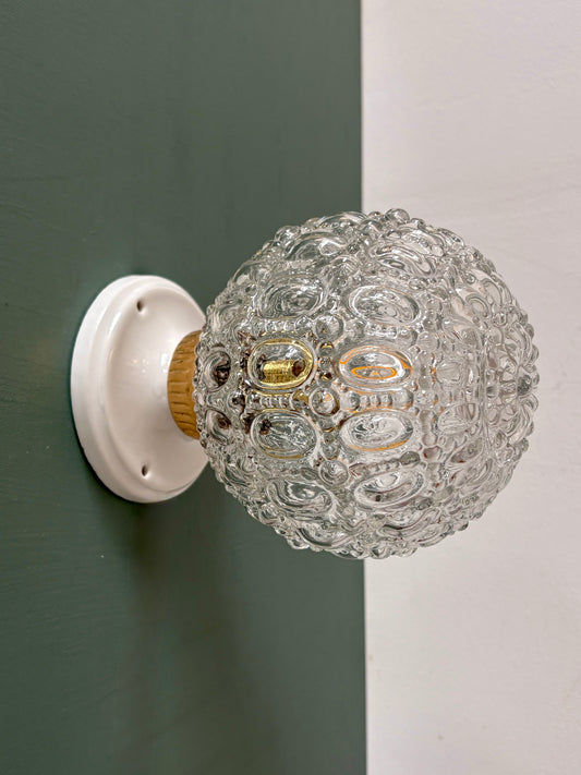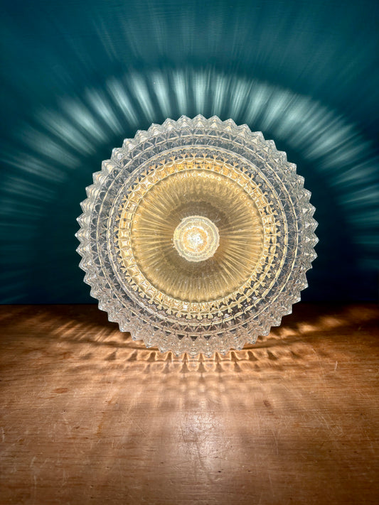 Applique ou plafonnier globe vintage en verre moulé pointe de diamant