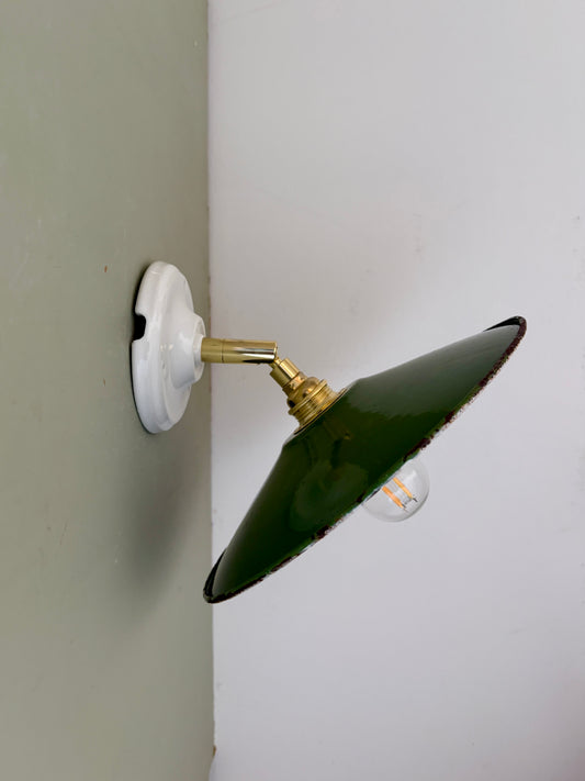 Applique abat-jour vintage en tôle émaillée verte et blanche