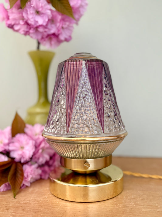 Lampe à poser globe vintage art déco en verre transparent et violet