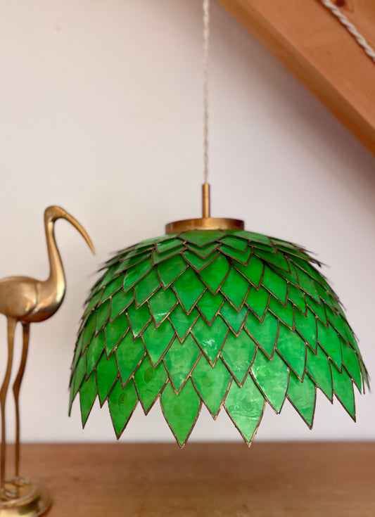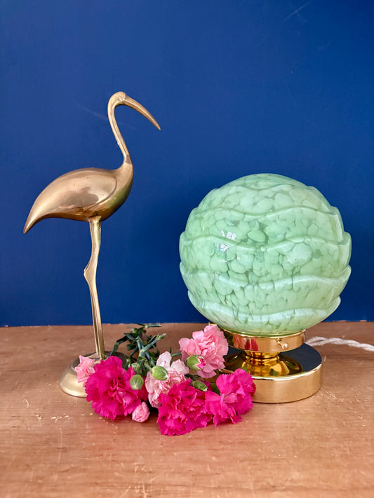 Lampe à poser globe vintage en verre de Clichy vert mint