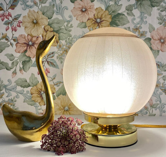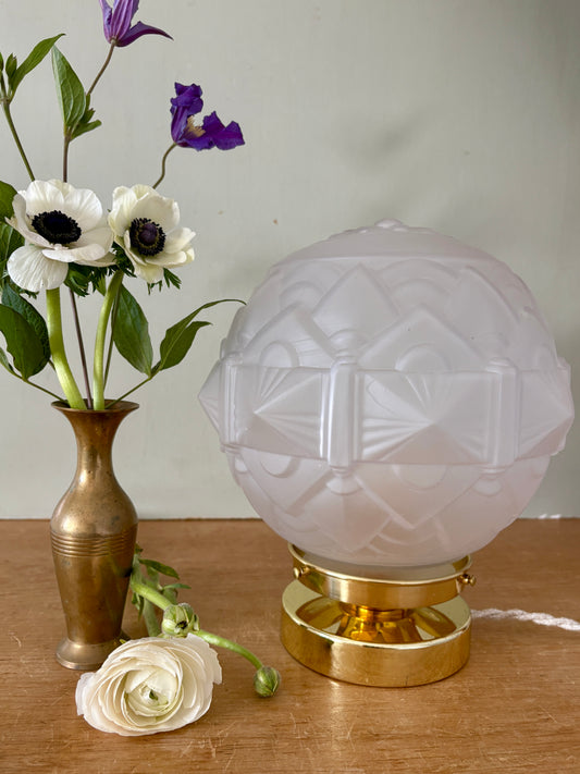 Lampe à poser globe ancien art déco en verre de Clichy rose et or