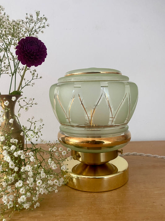 Lampe à poser globe vintage art déco XXL en verre dépoli rose