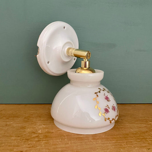 Applique abat-jour vintage en opaline blanche dessins de fleurs