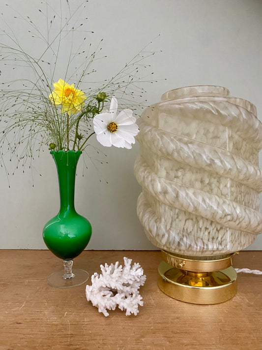 Lampe à poser globe vintage art déco en verre de Clichy jaune pâle
