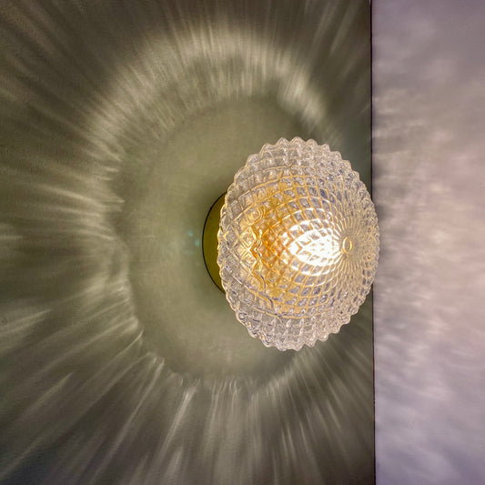 Applique ou plafonnier globe vintage en verre pointe de diamant