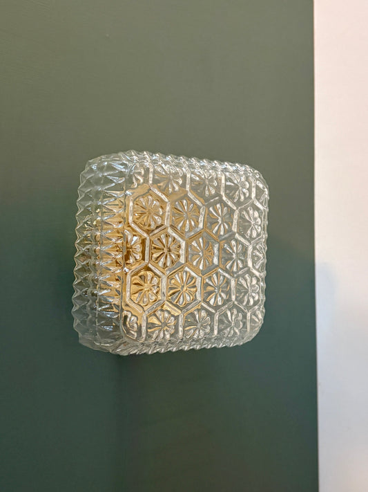 Applique ou plafonnier globe vintage carré en verre moulé