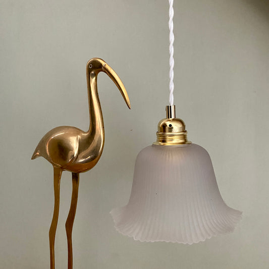 Suspension abat-jour vintage art éco en verre dépoli rose