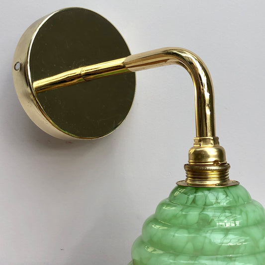 Suspension abat-jour vintage art déco en verre granité jaune et doré