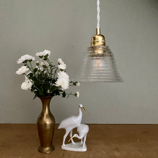 Applique abat-jour vintage en verre moulé - collection vaisselle -