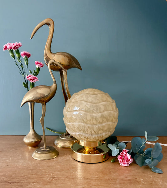 Lampe à poser globe vintage en verre ambré (BA1)