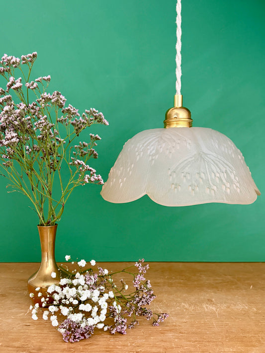 Suspension abat-jour vintage en verre dépoli