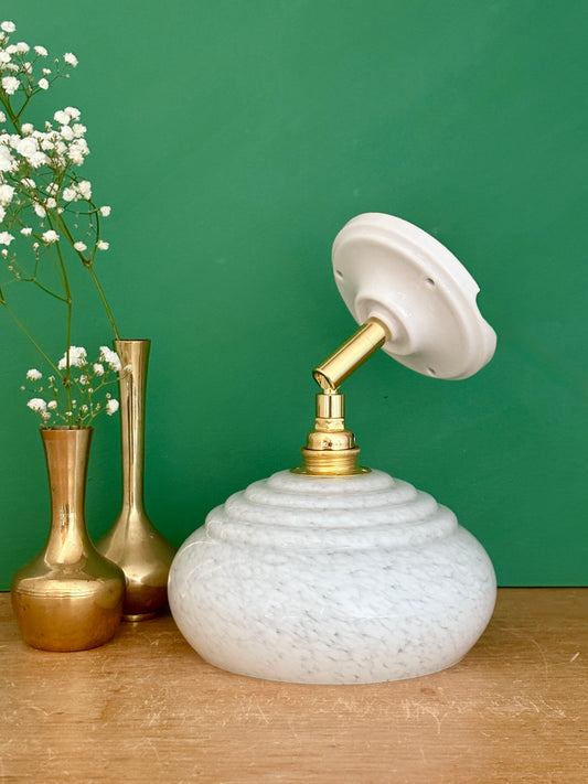 Applique tulipe vintage en verre granité blanc et doré