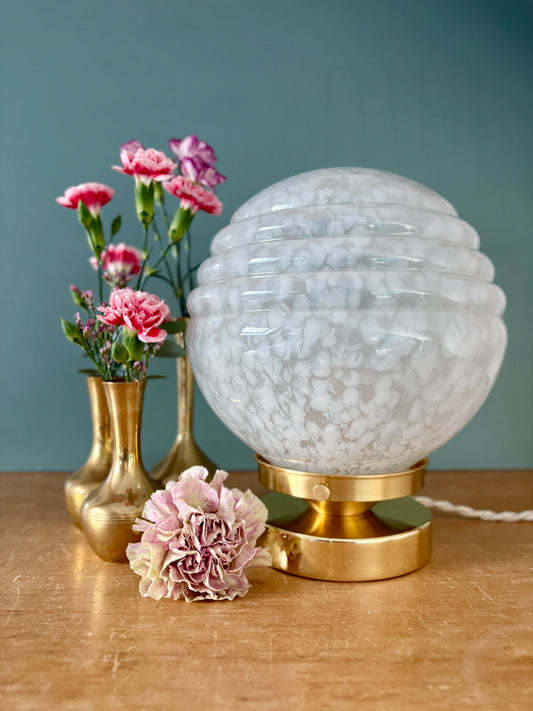 Lampe à poser globe vintage art déco en verre de Clichy blanc