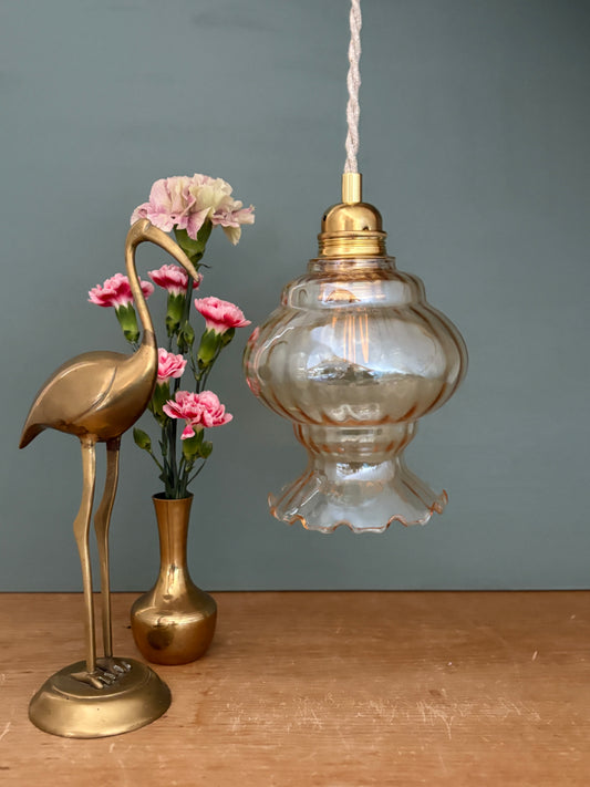 Suspension globe vintage en verre ambré (GA2)